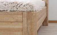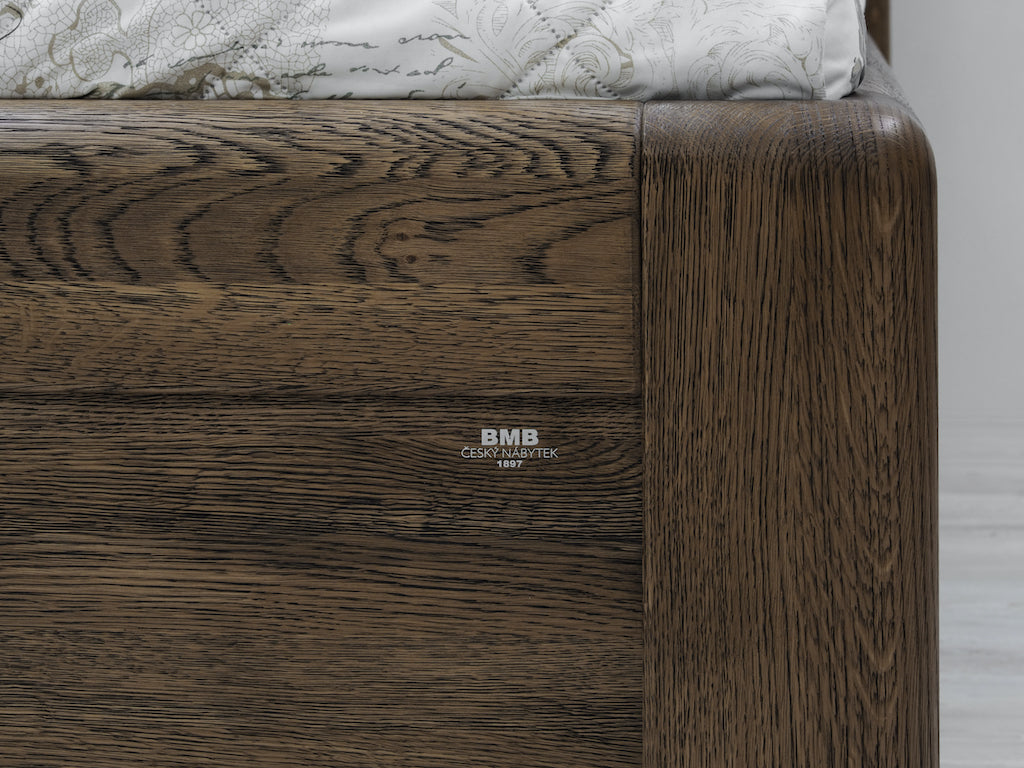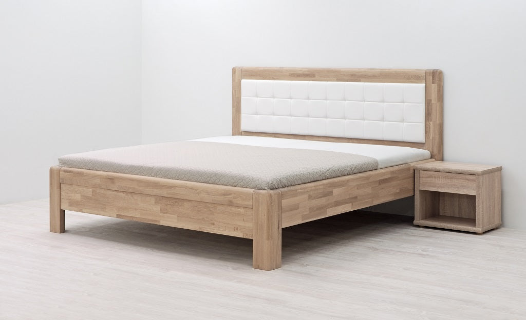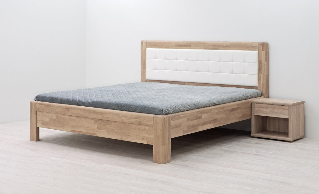 Postele z masivu mají konstrukční díly (nohy) tloušťky vždy minimálně 40 mm, postranice 40 mm a výplň zadního čela 40 mm + čalounění a předního čela 20 mm. Každá postel vyrobená z masivu je jedinečná. Kresba dřeva je u každého kusu dřeva jiná a originální, proto nelze vyrobit dva totožné výrobky. Postel může být vyrobena z jádrového buku, průběžného buku, dubu cink, dubu průběžného nebo dubu drásaného.