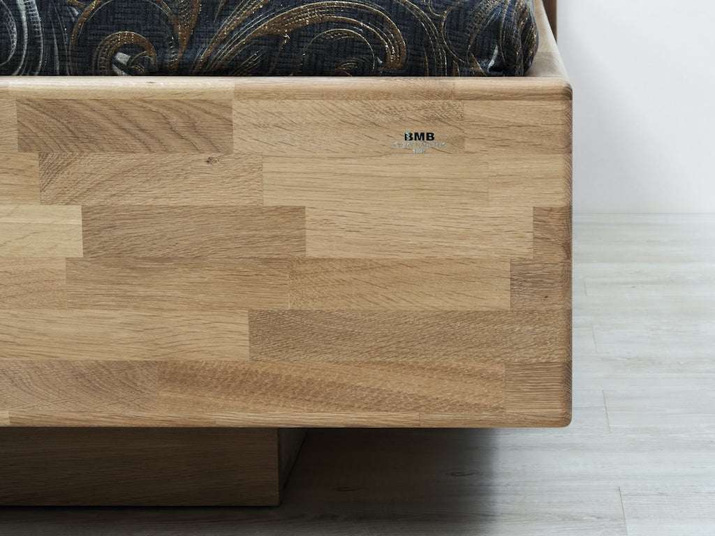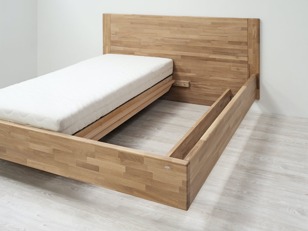 Postele z masivu mají konstrukční díly (nohy) tloušťky vždy minimálně 40 mm. Každá postel vyrobená z masivu je jedinečná. Kresba dřeva je u každého kusu dřeva jiná a originální, proto nelze vyrobit dva totožné výrobky. Postel může být vyrobena z jádrového buku, průběžného buku, dubu cink nebo dubu průběžného.