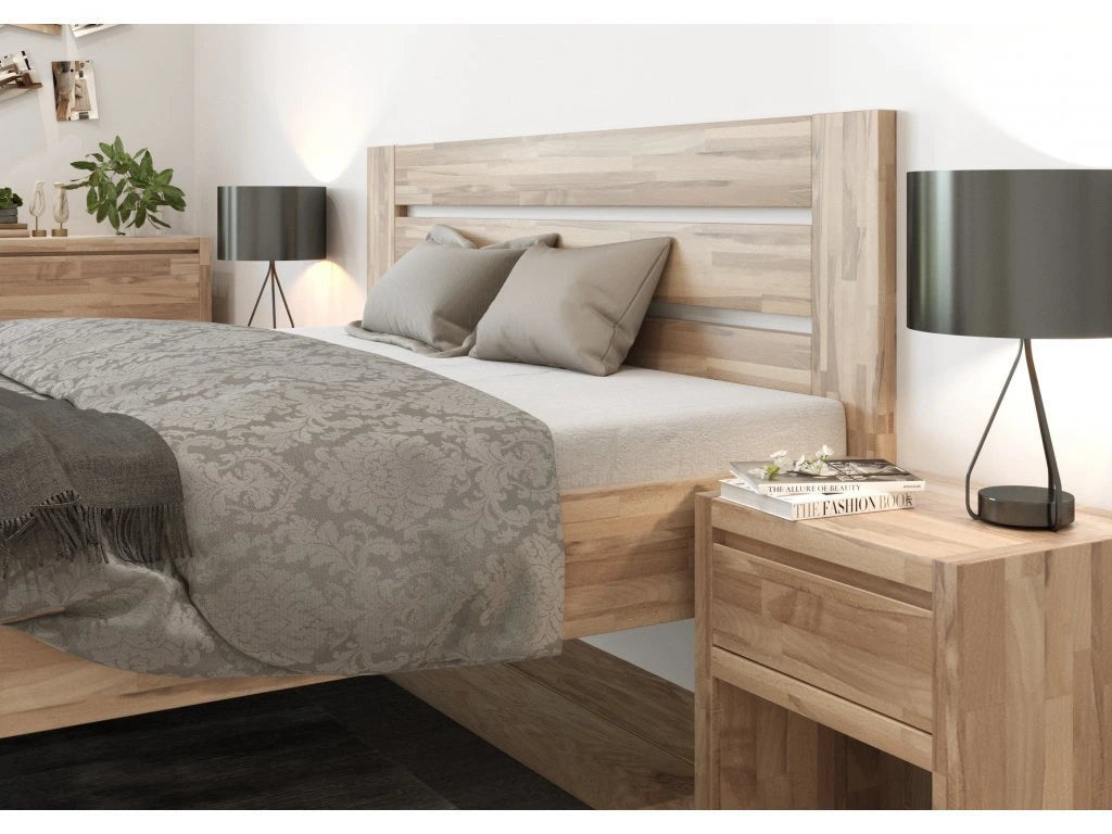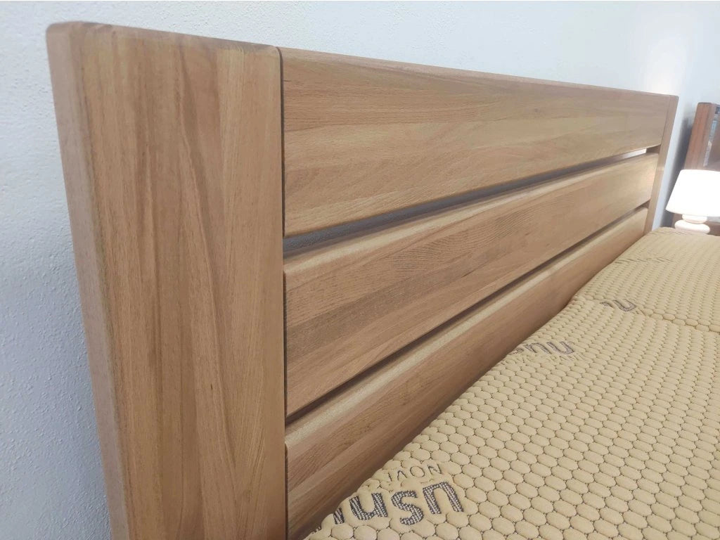 – Masivní postel vyráběna v bukovém, jasanové a dubovém provedení