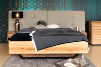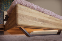 Masivní dubová postel Aria s kovovou podnoží je jedinečná kombinací materiálů – bukového dřeva a kovu. Vzdušná a jednoduchá kovová podnož navíc vytváří efekt levitující postele. Tato manželská postel je vyrobena z masivního dřeva dub nature. Dub nature se vyznačuje přírodním výběrem unikátních přírodních lamel, které obsahují rovnoměrně rozvrstvené suky tmelené černým tmelem, který zvýrazňuje estetičnost daného suku. Lamely obsahují také praskliny, které jsou taktéž tmelené černým tmelem, který zvýrazňuje autentičnost dubového materiálu a přírodní surový vzhled. Barevný nesoulad celé plochy vzniká při výrobě záměrně, protože jsou vybírané tmavé lamely v kombinaci se světlejšími lamelami, aby se zvýraznila přírodní (naturální) stránka vzhledu dubového masivu.