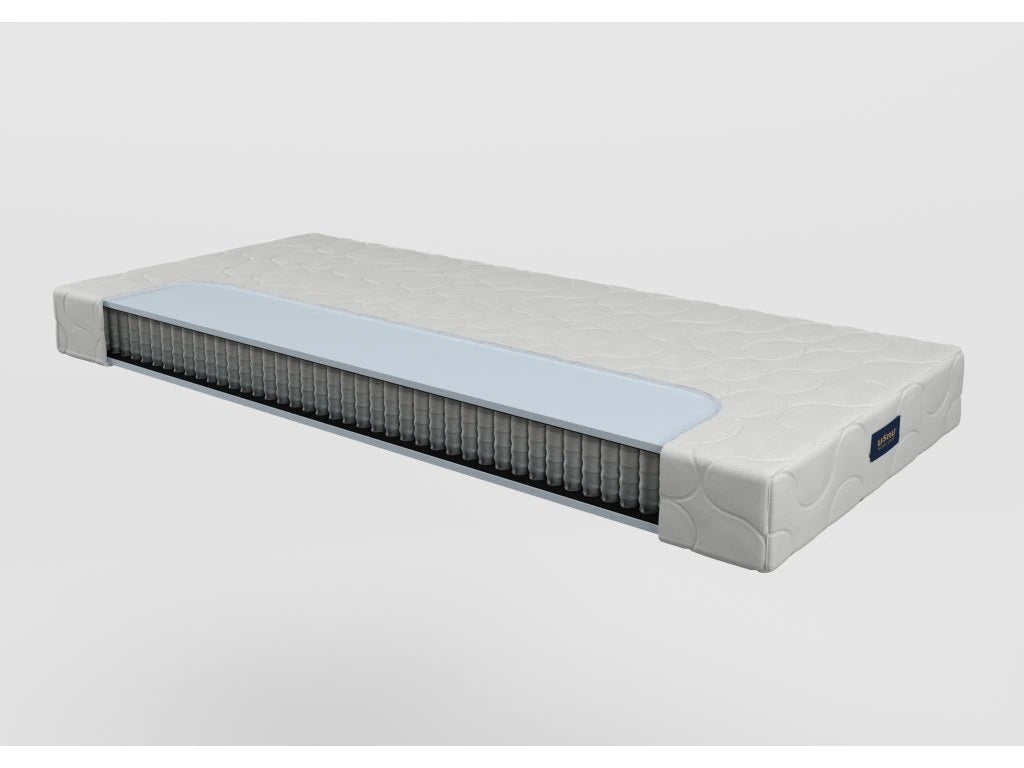 – Pružinová taštišková matrace s horní vrstvou paměťové pěny.