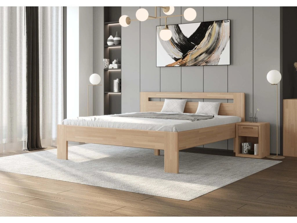 Dřevěná postel z masivu Benny II se vyznačuje kvalitním zpracováním a vysokou pevností. Zaoblení všech pohledových hran (rádius 10 mm), osvědčené vysoce pevné spojovací kování, tloušťka masivu 30 mm, nastavitelná výška roštů pro individuální přizpůsobení výšky lehací plochy až do varianty "senior" (např. s výškou matrací 20 cm do celkové výšky 65 cm dle typu roštu) a skvělá cena, to jsou přednosti, které osloví i ty nejnáročnější zákazníky. Postel lze vybavit úložným prostorem typu Box s horním přístupem výklopnými rošty od nohou nebo z boku postele. (viz související produkty).