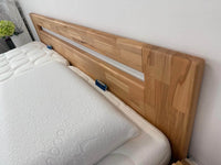 Předností ložnice Benny II je použití průběžného masivu s výběrem ze čtyř různých dřevin - čistý buk, jádrový buk, jádrový jasan nebo dub. Bukový masiv jádrový má výraznější kresbu a tmavší jádrové oblasti. Čistý buk zachovává jednotný, celistvý vzhled postele a umožňuje vyniknout struktuře dřeva. Jádrový jasan se vyznačuje smetanově bílou až narůžovělou barvou s nepravidelně ohraničeným tmavě hnědým jádrem a výraznou kresbou dřeva. Dubové provedení kombinuje klasický vzhled s vysokou pevností pro nejnáročnější uživatele. Nově jsme do nabídky masivů zařadili také buk jádrový cink. Všechny dřeviny jsou přírodní materiál, který se může v různých částech projevit různým zabarvením. Tato variabilita dodává postelím na zajímavosti a každý kus má originální vzhled.