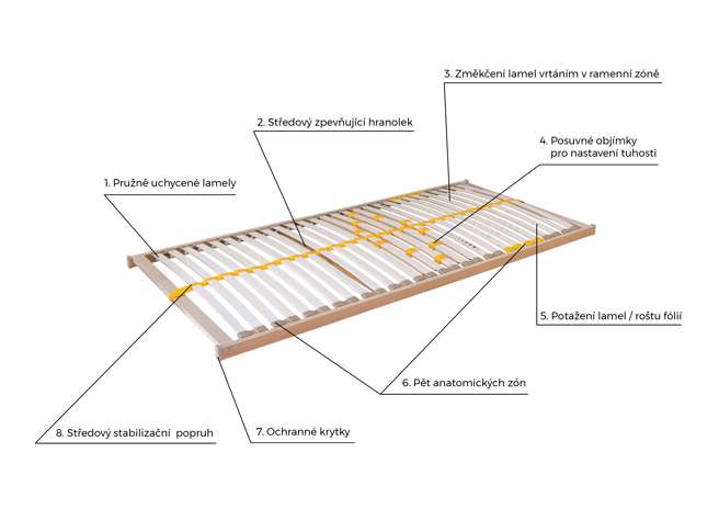– 28 lamelový výklopný rošt z boku, vhodný pro postele s úložným prostorem.