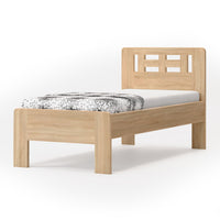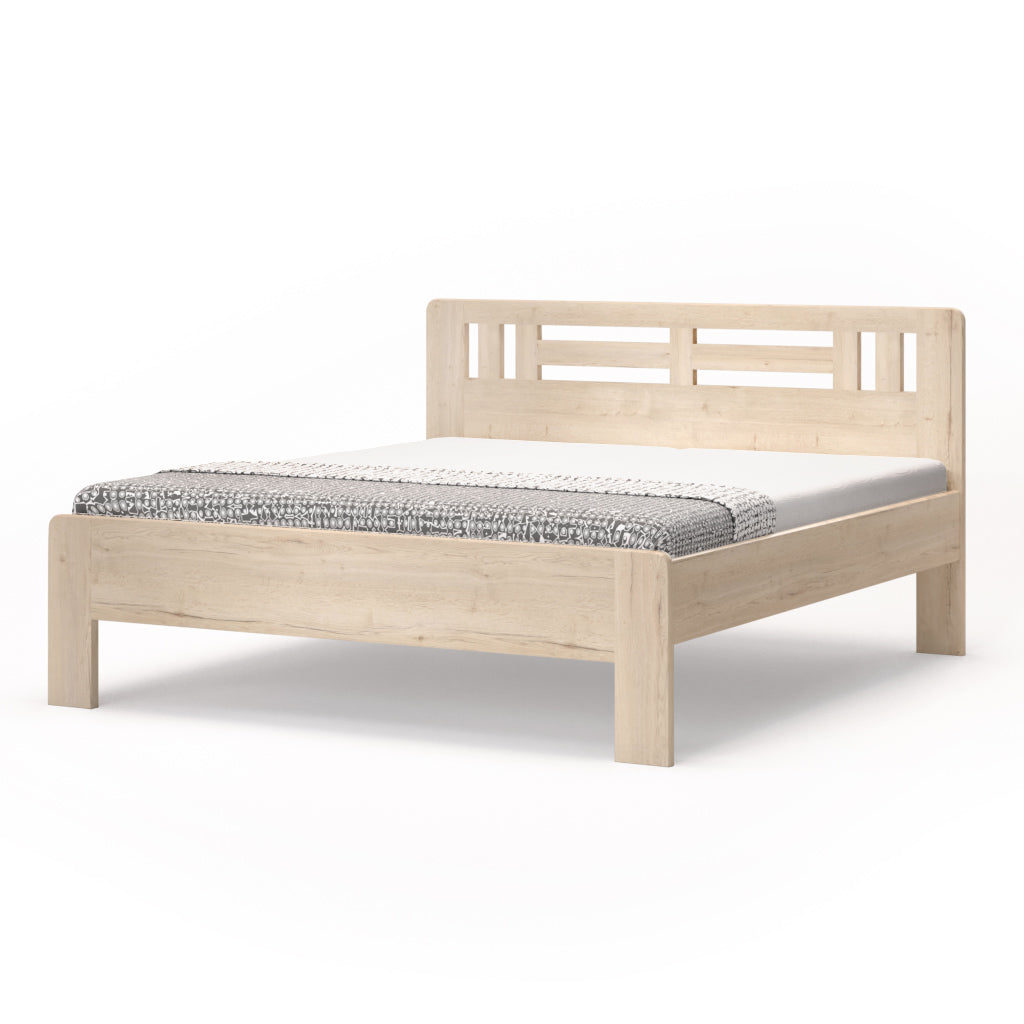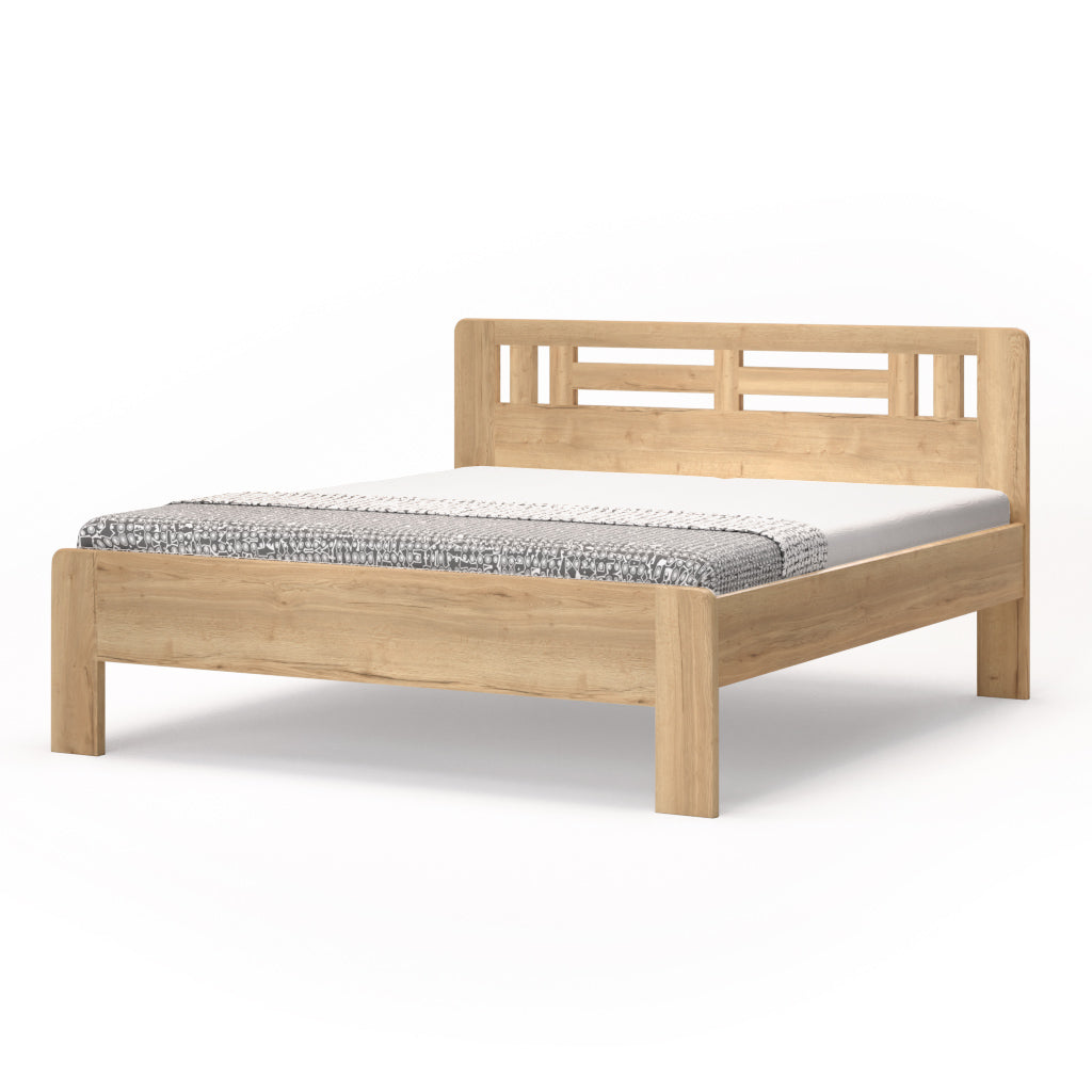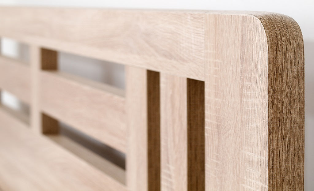 Pro kreativní interiéry. Moderní postel Ella moon má originálně tvarované čelo, které je vhodné zejména do kreativních interiérů. Postel v sobě spojuje praktické využití s dokonale propracovanými liniemi. Průřezy v čele postele vytváří zajímavý vzhled, který působí neotřelým dojmem. Vysoce kvalitní postel české výroby zajišťuje pohodlné a zdravé ležení. Masiv je možné vybírat z buku nebo dubu o tloušťce dřeva 40 mm. Další možností je zhotovení postele z laminované dřevotřísky, která má tloušťku 32 mm. Všechny materiály poskytují lůžku stabilní a pevnou konstrukci.