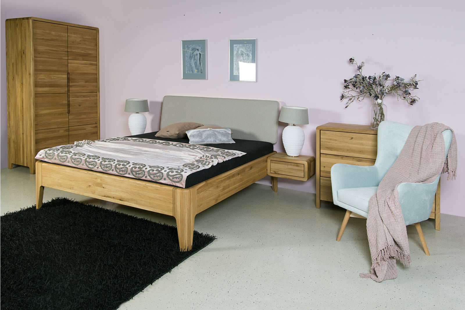 Celou ložnici si pak můžete sladit komodami a skříní z kolekce FANTAZIE, u kterých je zachován design a kombinace materiálů.