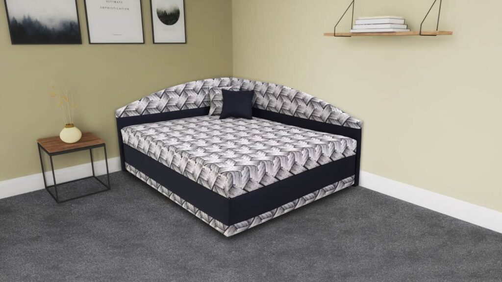 – Rohové lůžko s pevně přičalouněnou matrací, možnost výběru z 12 typů matrací.