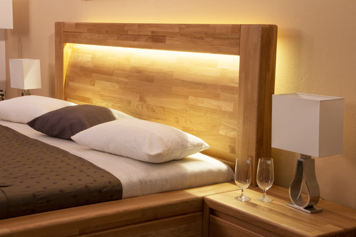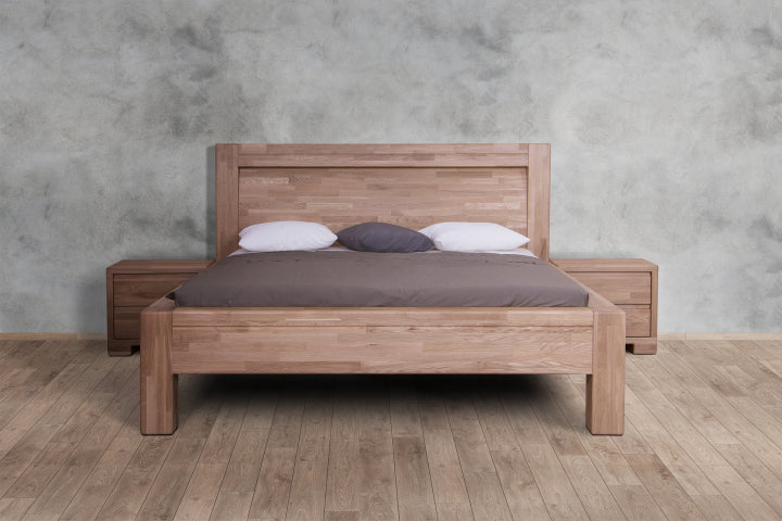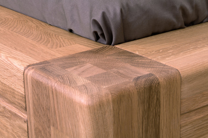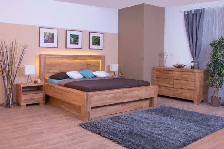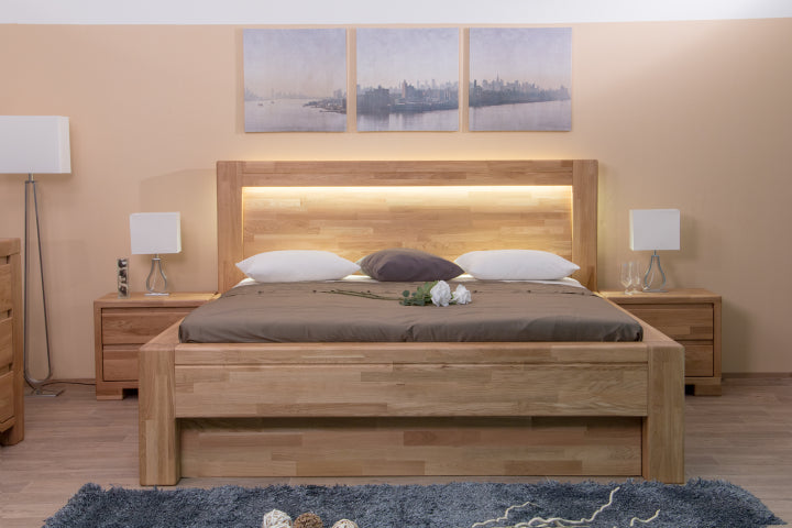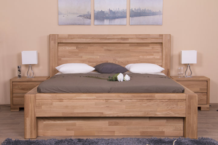 Luxusní dubová postel Imperia zaujme svým robustním designem. Je vyrobena z masivního dubového dřeva (vyrábíme také s jinými čely, postel naleznete níže). Přesto při bližším zkoumaní překvapí svým jednoduchým, geometricky přesným a velice elegantním tvarem. Robustní rám postele, na který plynule navazuje vsazené plné rovné čelo, působí velice masivně a nabízí stoprocentní stabilitu. Rám je doveden k dokonalosti díky jemné frézované lince, která postel lemuje po celém jejím obvodu a designově ji tak nadlehčuje. Dohladka opracované dubové dřevo je nejen krásné na pohled, ale také bezpečné na dotek.