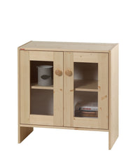 – Komoda ALFA nabízí 1 polici s prosklenými dvířky a je vyráběna ze SMRKU.