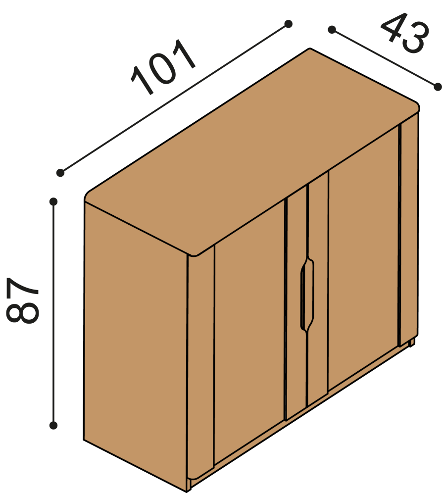 – Výška 88 cm, šíře 101 cm, hloubka 43 cm.