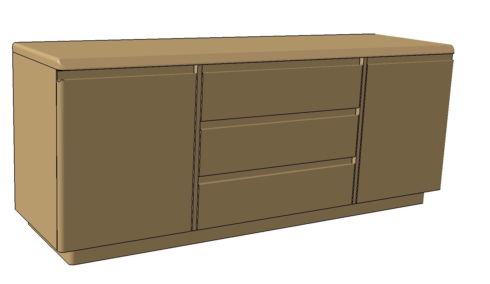 – 2. dvéřová + 3 zásuvky má výšku 77 cm, šíři 160 cm, hloubku 40 cm.