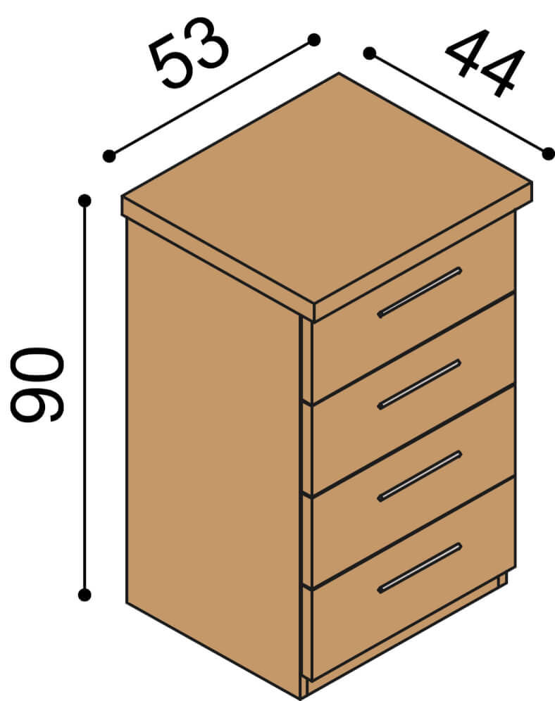 – Výška 90 cm, šíře 53 cm, hloubka 44 cm.