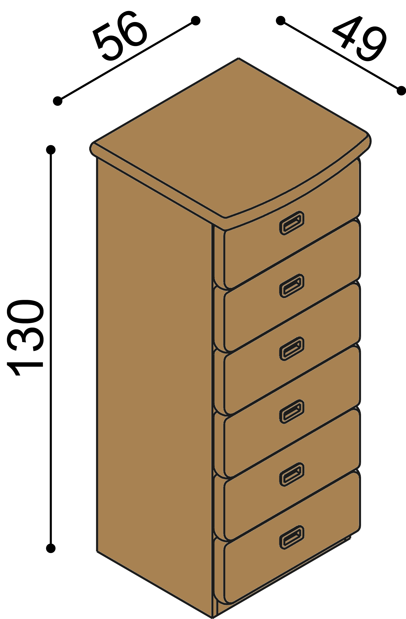 – Výška 130 cm, šíře 56 cm, hloubka 49 cm.