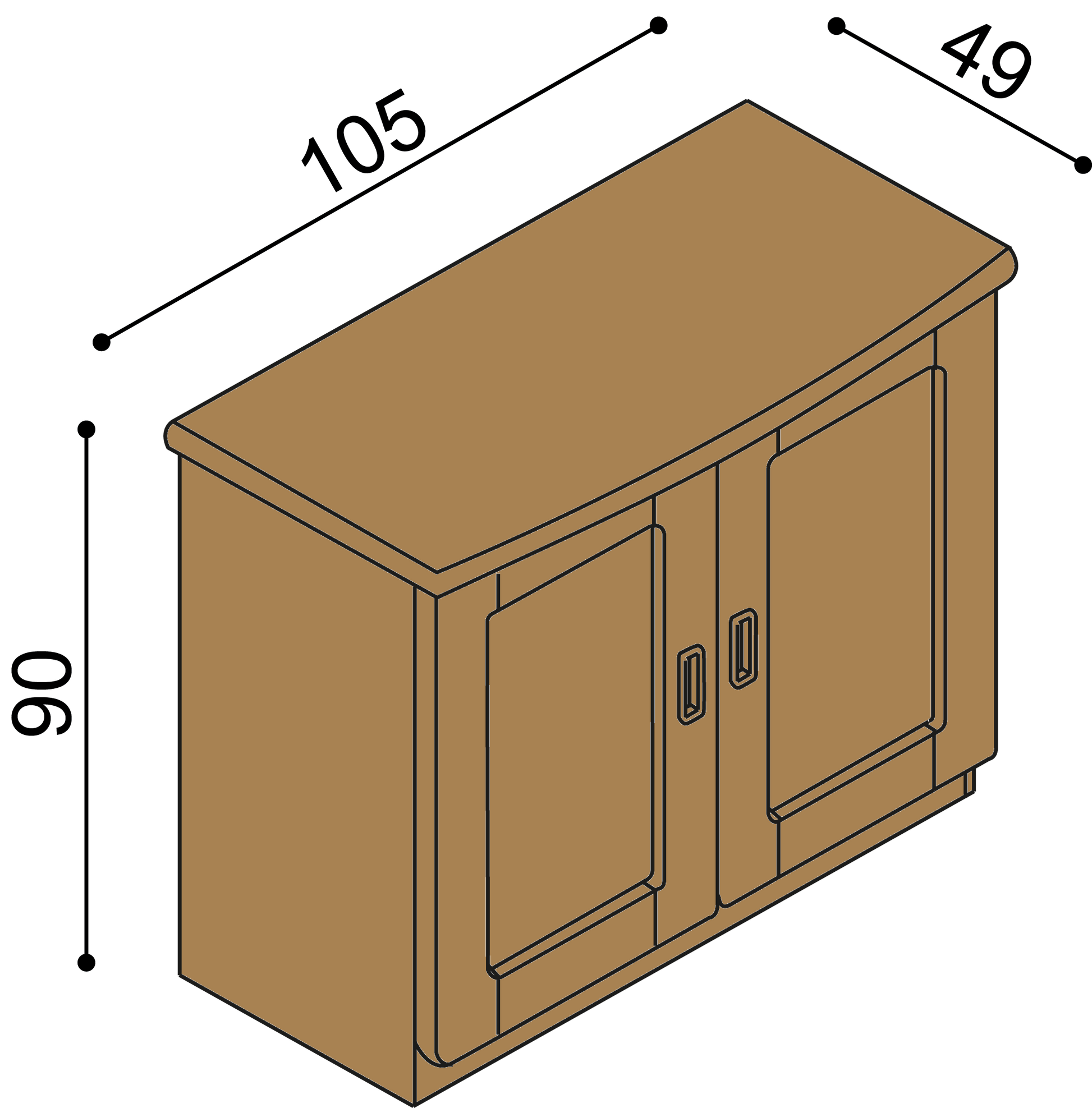 – Výška 90 cm, šíře 105 cm, hloubka 49 cm.