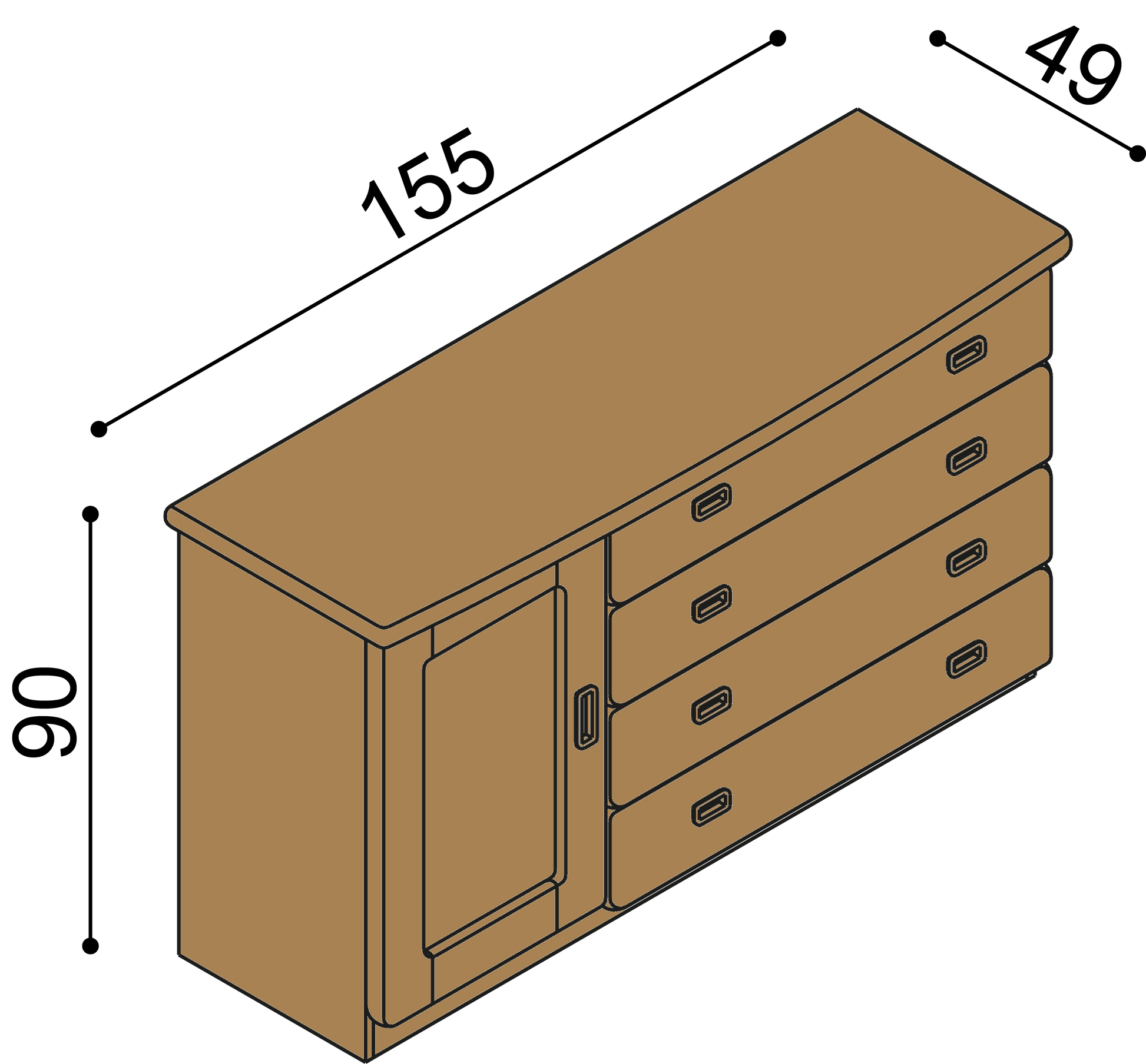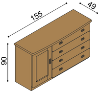 – Výška 90 cm, šíře 155 cm, hloubka 49 cm.