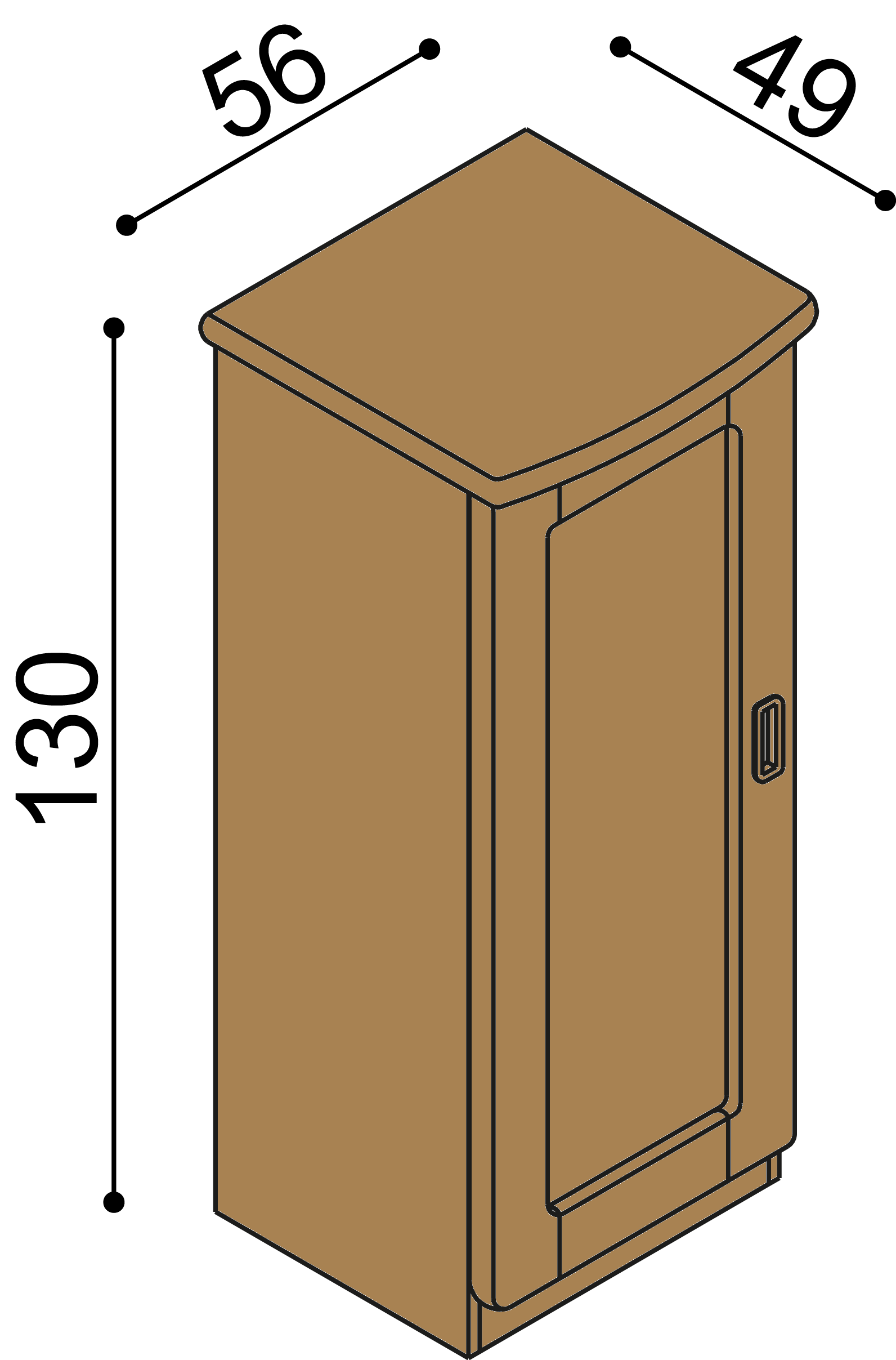 – Výška 130 cm, šíře 56 cm, hloubka 49 cm.