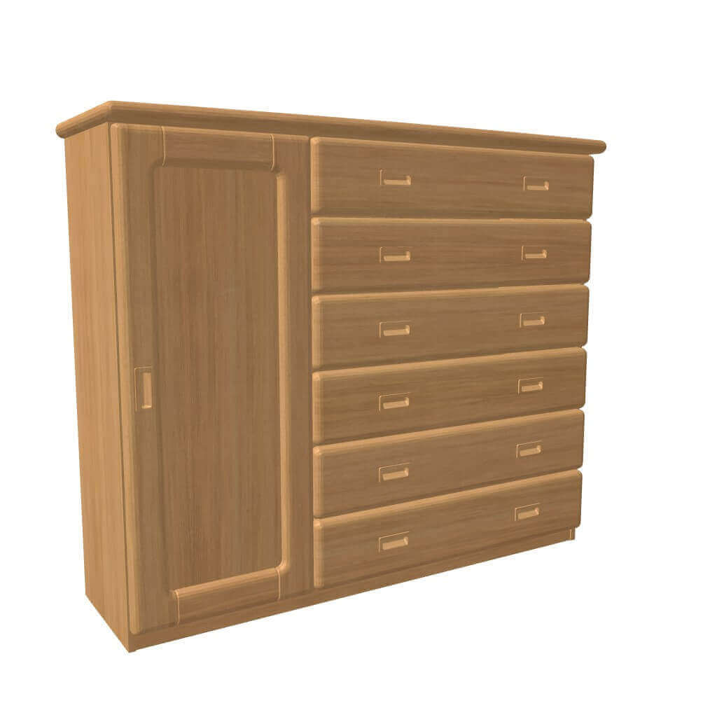Komoda REBEKA dvířka plná 3 police 6 zásuvek velkých