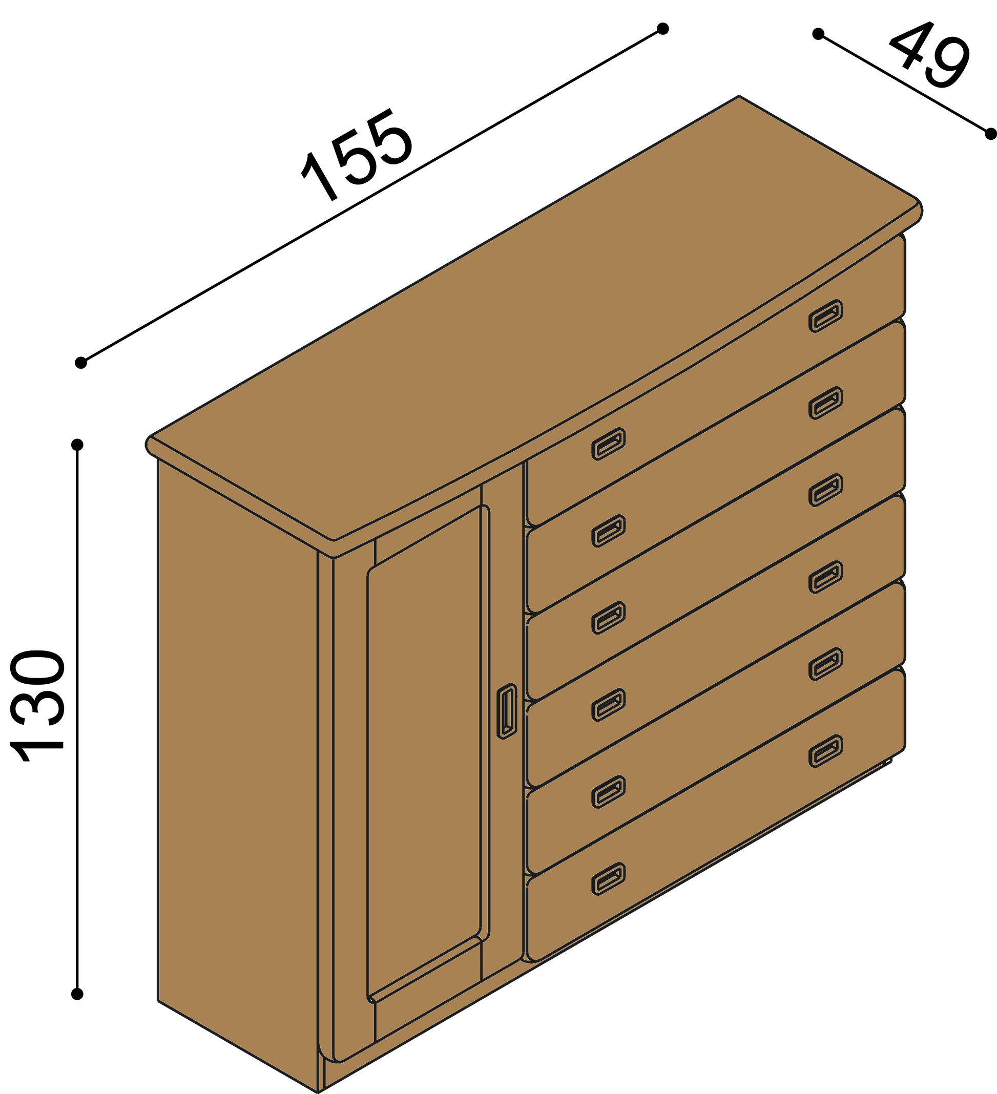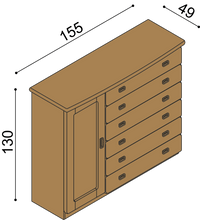 – Výška 130 cm, šíře 155 cm, hloubka 49 cm.