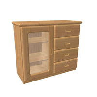 Komoda REBEKA dvířka prosklená 2 police 4 zásuvky malé