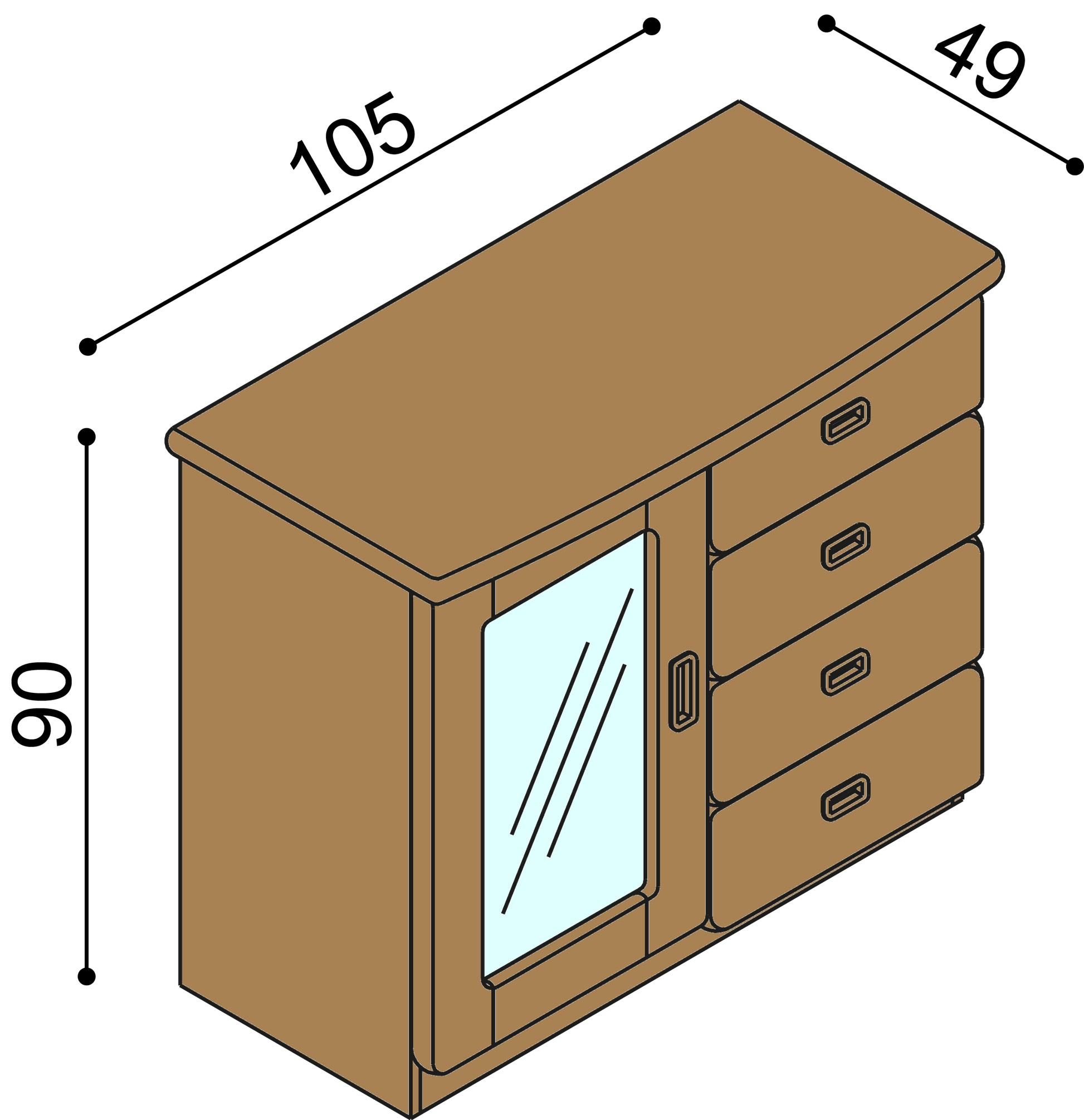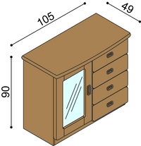 – Výška 90 cm, šíře 105 cm, hloubka 49 cm.