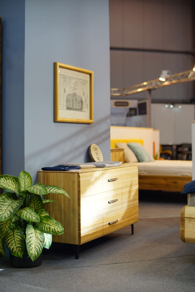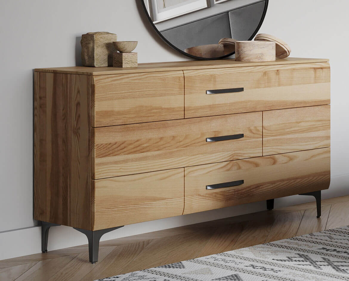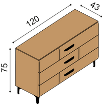 Záměrem designérky bylo vytvořit komodu, která se hodí nejen do ložnice, ale díky své praktičnosti a nadčasovému designu bude ozdobou i jiných obytných prostor. Opravdu široké zásuvky dělají z této komody praktického pomocníka. Do jednotlivých prostorných zásuvek je možné ukládat nejen ložní prádlo a povlečení, ale i další věci, které potřebují pro uložení větší prostor. Citlivě zvolené nožičky navozují u tohoto modelu vzdušnost a eleganci.