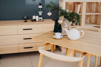 U každé zásuvky je možné si všimnout decentní svislé linky, která velmi citlivě zjemní opravdu široké čílko zásuvky. Zcela přírodní vzhled s barevnými záběhy jádrového jasanu tak navozuje atmosféru přírody a naprosté jedinečnosti originálu. Design komody TEDA tak tvoří sama příroda.