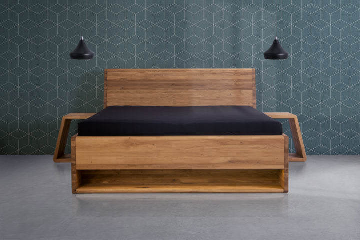 Masivní dubová postel Kupé je v moderním designu. Tato manželská postel je vyrobena z masivního dřeva divoký dub. Divoký dub se vyznačuje přírodním výběrem unikátních přírodních lamel, které obsahují rovnoměrně rozvrstvené suky tmelené černým tmelem, který zvýrazňuje estetičnost daného suku. Lamely obsahují také praskliny, které jsou taktéž tmelené černým tmelem, který zvýrazňuje autentičnost dubového materiálu a přírodní surový vzhled. Barevný nesoulad celé plochy vzniká při výrobě záměrně, protože jsou vybírané tmavé lamely v kombinaci se světlejšími lamelami, aby se zvýraznila přírodní (naturální) stránka vzhledu dubového masivu.