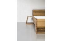 K manželské posteli Kupé si můžete vybrat také noční stolky ze stejné kolekce. Noční stolek je navržen tak, aby ladil s postelí, je tedy zachováno stejné zaoblení hran i spojení rohů. Také noční stolek budí dojem levitování – připevňuje se k bočnici postele a pod ním je volný prostor.