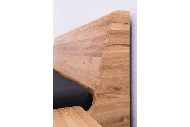 Masivní postel Kupé je ve všech typech povrchových úprav ošetřena z vnější i vnitřní strany.