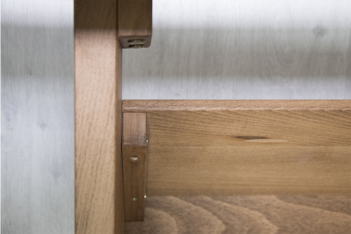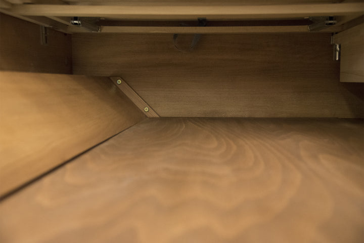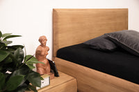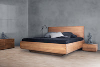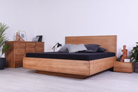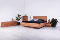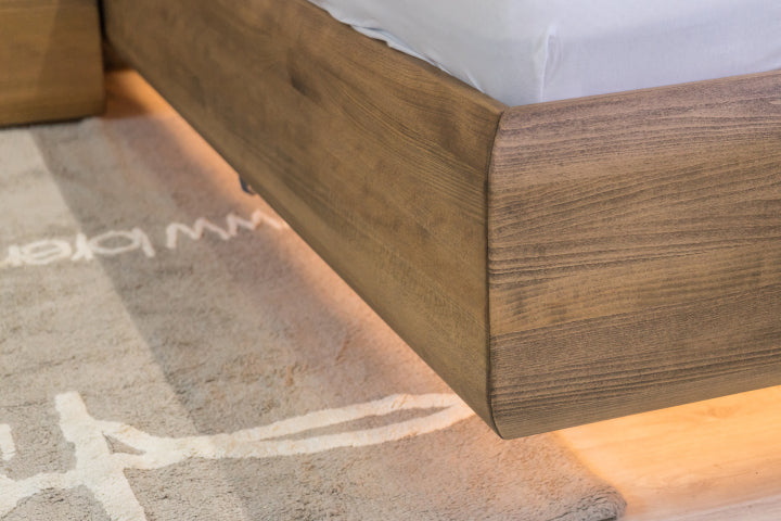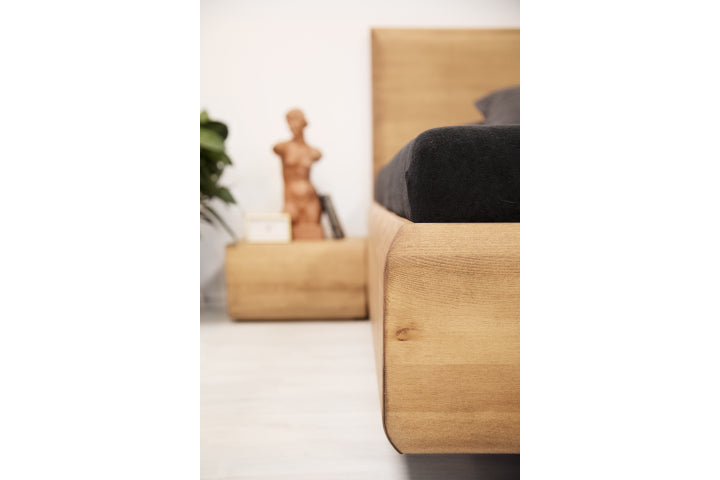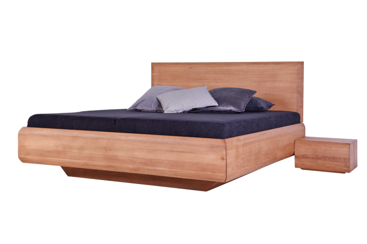 Manželská postel Levity s rovným čelem vyniká svým designem - ten je ovlivněný právě zabudovaným úložným prostorem. Díky lehce odsazenému úložnému prostoru postel vypadá, jako by mírně levitovala. Takto navržená konstrukce má několik výhod - velký, snadno přístupný úložný prostor, designově postel nevypadá příliš robustně, zpevnění celého rámu postele. Dno úložného prostoru je z bukové překližky tloušťky 4 mm a je vždy ošetřeno vámi vybranou povrchovou úpravou - stejným odstínem jako celá postel.