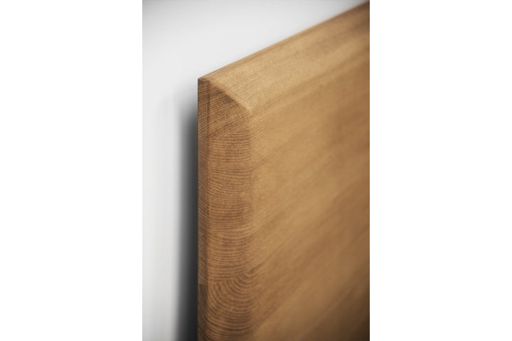 Tloušťka použitého materiálu je u celého rámu je 40 mm. Postel je dokonale opracovaná a všechny hrany jsou zaobleny - vnější i vnitřní. Rohy postele jsou navrženy tak, aby na sebe přímo navazovaly. Spoj v rohu je tedy opravdu nepatrný.