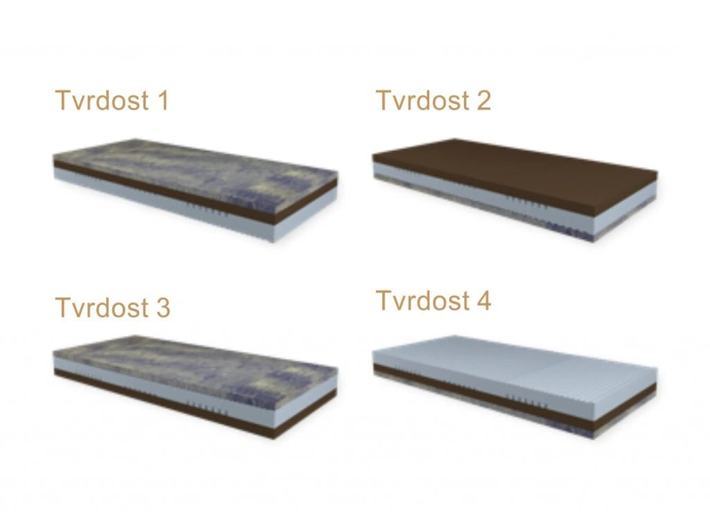 Matraci si můžete přizpůsobit do 4 variant tvrdosti: