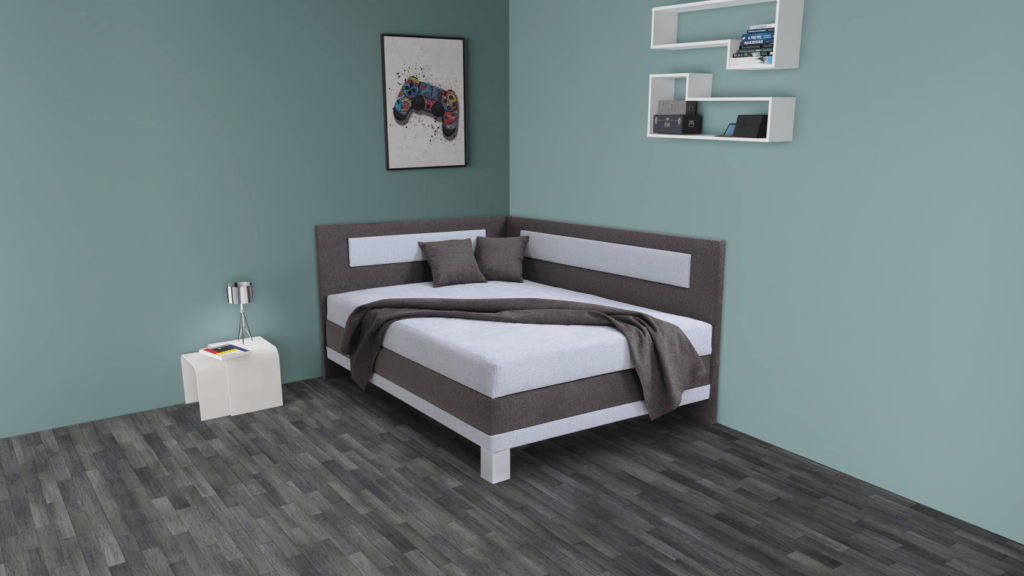 – Rohové lůžko s pevně přičalouněnou matrací, možnost výběru z 12 typů matrací.