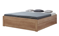 Postele imitace dřeva jsou vyrobeny z vysoce kvalitních lamino desek firmy Egger na Kronospan, které splňují západoevropské standardy kvality a designu. Hlavním důvodem pro oblíbenost těchto postelí je, že nabízejí širokou škálu barev, které lze snadno kombinovat s dalším nábytkem v ložnici. Výhodou je nižší ceníková cena. Konstrukční díly jsou vyráběny z materiálu tloušťky 32 mm, postranice mají 32 mm, výplně zadního a předního čela mají 16 mm. Provedení postele může být s rovnými rohy, které je levnější na výrobu nebo s oblými rohy, které se ručně frézují a dokonaleji navozují atmosféru masivního dřeva.