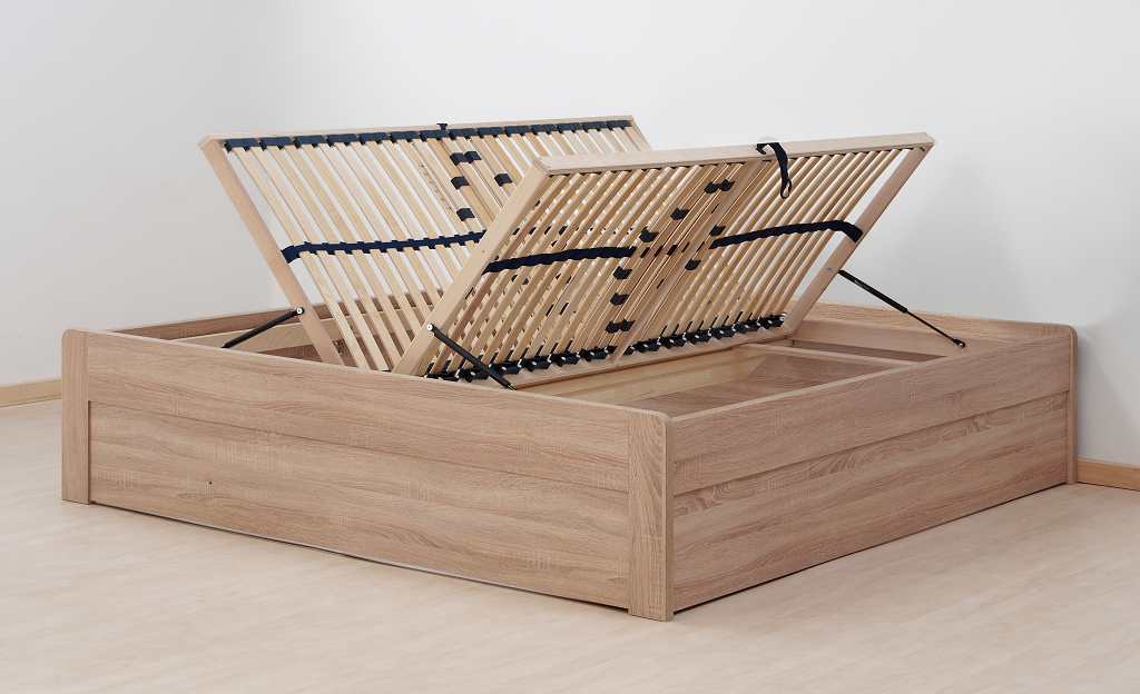 - varianta se střednicí, bez roštů a pístů, v rozměrech šířka 90, 120, 140, 160, 180 nebo 200 cm, délka 200, 210 nebo 220 cm.