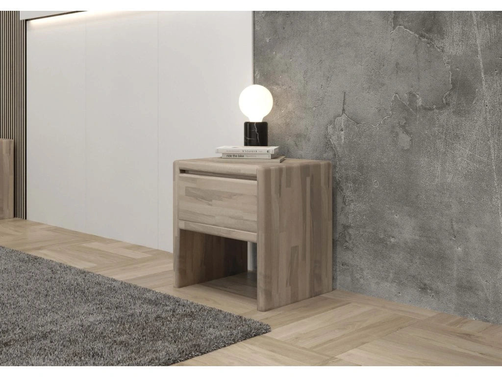 – Noční stolek je vyráběn z masivního buku, jasanu a dubu