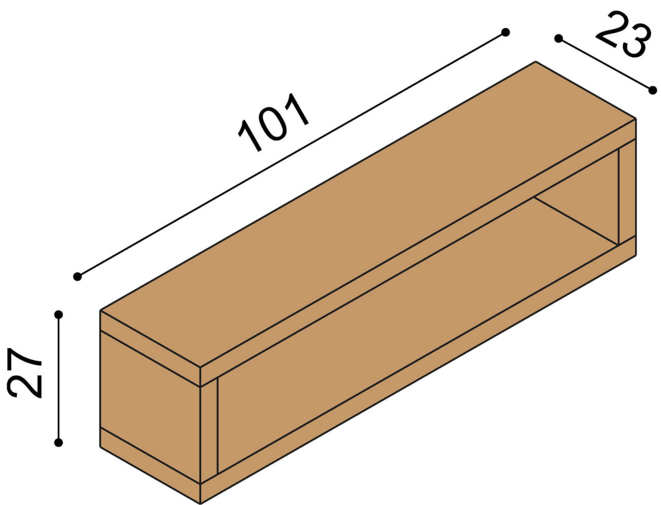– Výška 27 cm, šíře 101 cm, hloubka 23 cm.