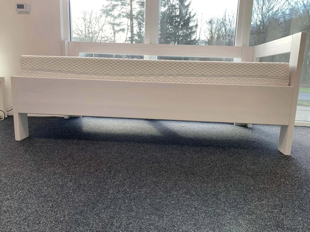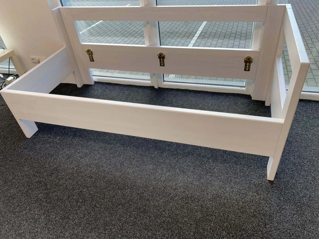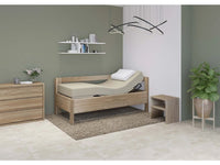 Dřevěná postel Salema z masivu s levým nebo pravým bokem, je určena pro širokou skupinu uživatelů ,mezi které patří lidé upoutaní na lůžko jako pečovatelská postel, ale také senioři, děti i dospělí. Postel využijete všude tam, kde je potřebná vysoká pevnost, kvalita a variabilita postele. Zvýšené čelo nad postranici postele podél celé postranice přináší možnost oddělení se od stěny, nebo slouží jako podpora uživateli. Zvýšené boky (vlevo nebo vpravo) zajistí možnost opření polštáře i v posteli bez polohovacího roštu z obou stran. Postel lze doplnit o všechny typy motorového polohování, nebo standardní rošty. Nastavitelné nosné patky pro uložení roštů umožní individuální zapuštění matrace do postele pro nastavení výšky lehací plochy a celkového vzhledu postele.