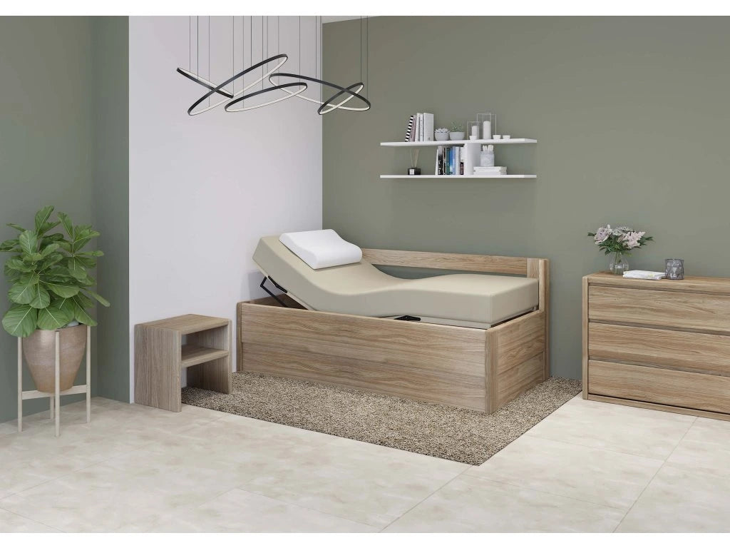 Dřevěná postel Salema z masivu bez boků s praktickým úložným prostorem je určena pro širokou skupinu uživatelů ,mezi které patří lidé upoutaní na lůžko jako pečovatelská postel, ale také senioři, děti i dospělí. Postel využijete všude tam, kde je potřebná vysoká pevnost, kvalita a variabilita postele. Zvýšené čelo nad postranici postele podél celé postranice přináší možnost oddělení se od stěny, nebo slouží jako podpora uživateli. Postel lze doplnit o všechny typy motorového polohování, nebo standardní rošty. Nastavitelné nosné patky pro uložení roštů umožní individuální zapuštění matrace do postele pro nastavení výšky lehací plochy a celkového vzhledu postele.