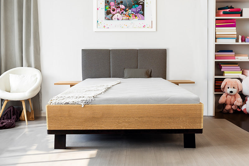 – Zaoblená masivní postel je vyráběna z dubového masivu.