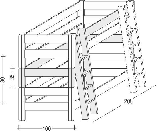 – Spojovací díl z buku umožňuje spojení dvou jednolůžek Sendy a vytvoření palandy.