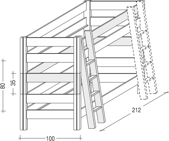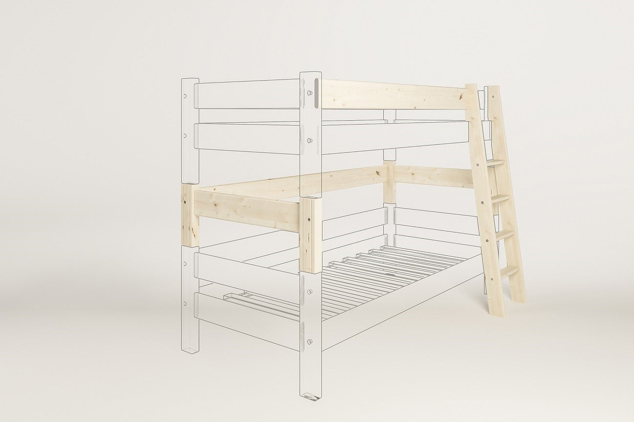– Spojovací díl ze smrku umožňuje spojení dvou jednolůžek Sendy a vytvoření palandy.