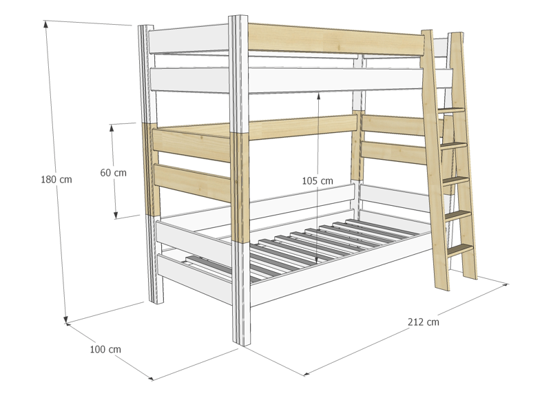 – Spojovací díl ze smrku umožňuje spojení dvou jednolůžek Sendy a vytvoření palandy.