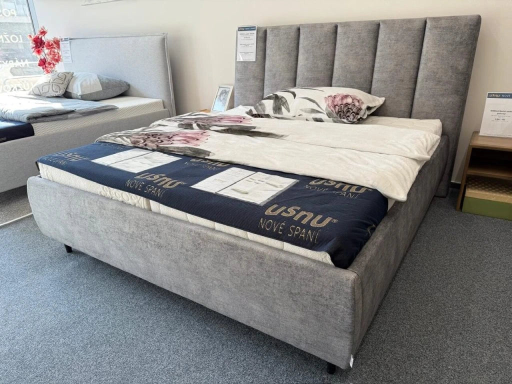 – Rámová čalouněná postel o síle 7 cm s nastavitelnou výškou ložné plochy.