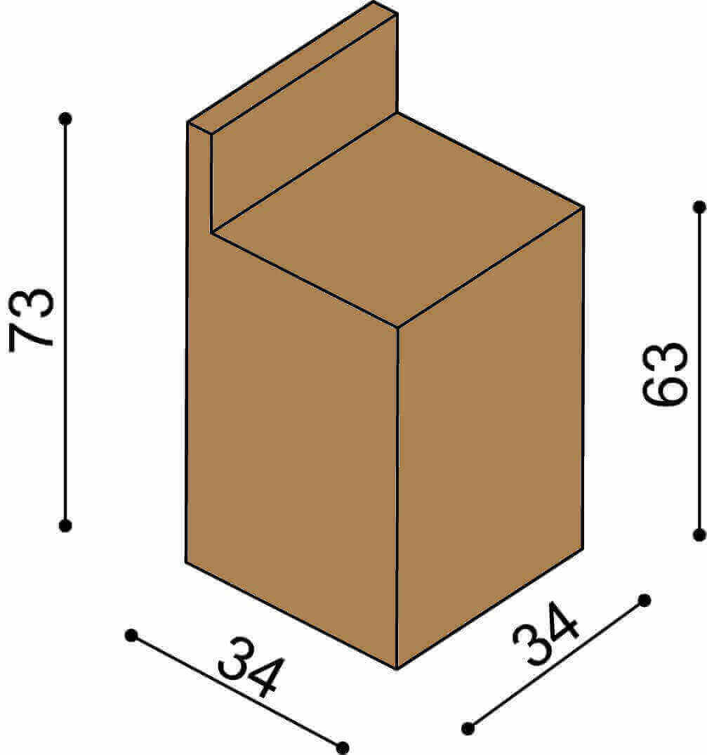 – Výška 73 cm, šíře 34 cm, hloubka 34 cm.