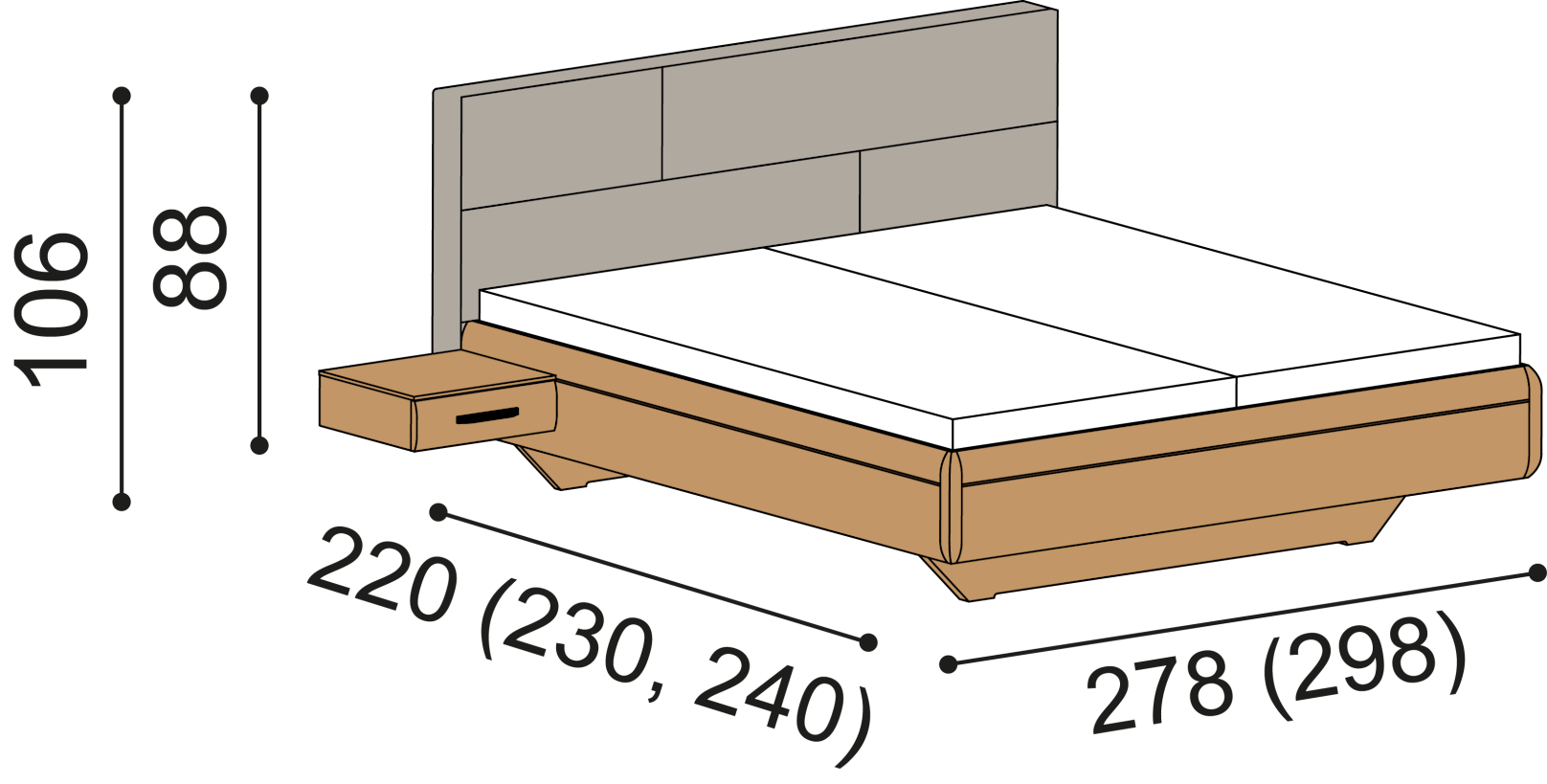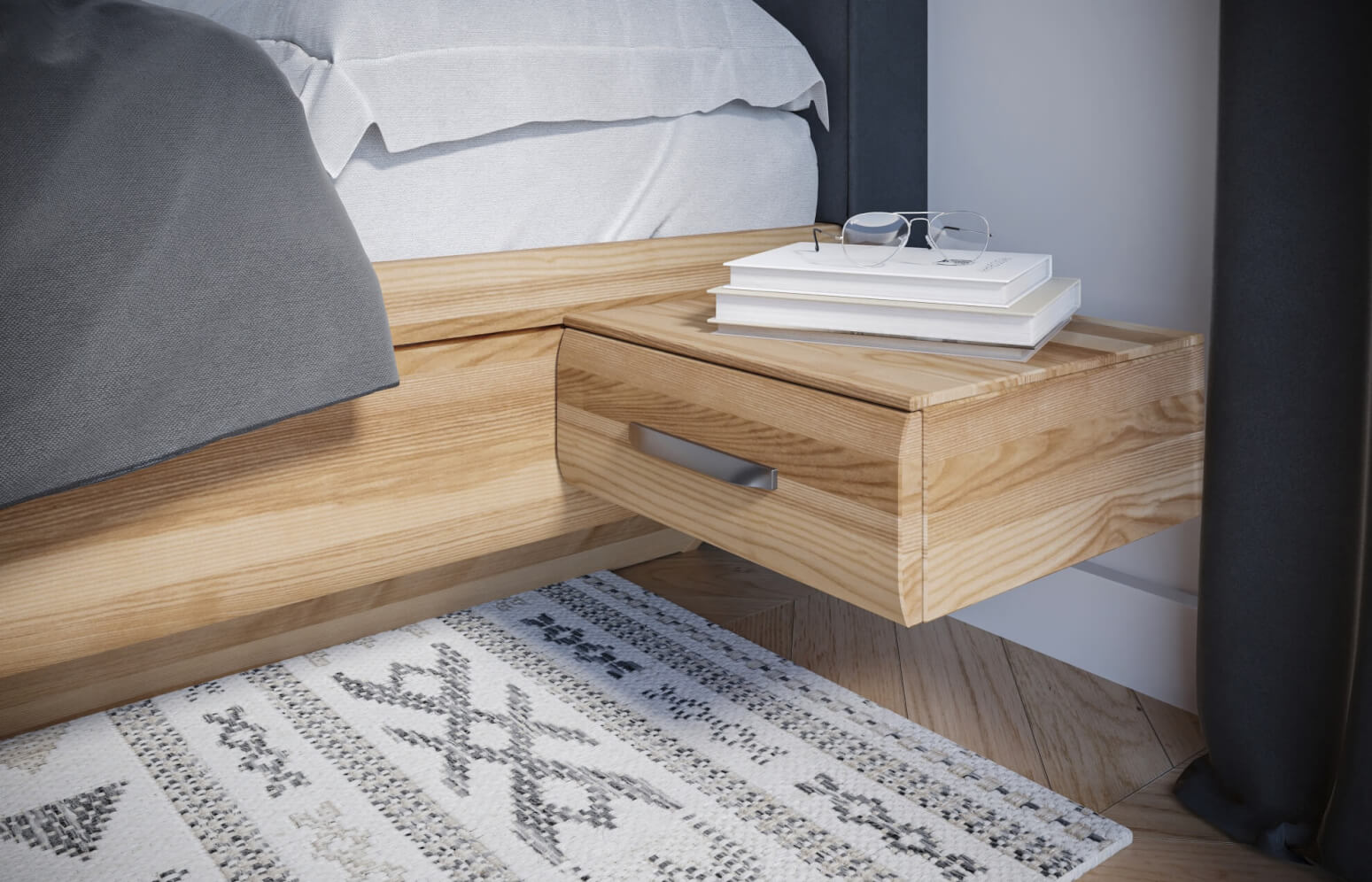 – Postel je vyráběna z masivního jádrového jasanu, dubu rustik a čistého průběžného dubu.