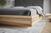 Rádi se občas v posteli uvelebíte ke čtení a relaxaci i během dne? Robustní a pohodlná postel TEDA z masivního dřeva bude důvodem, proč svou ložnici budete opouštět jen neradi. Bytelná konstrukce a pečlivě opracované dřevo zaručuje pevnost a jedinečný vzhled. Jednotlivé části postele jsou napojeny hladce a čistě tak, aby postel skvěle vypadala a zároveň Vám sloužila po dlouhá léta. Bočnice postele jsou zjemněny tenkou prořezávanou linkou, která citlivě rozdělí velkou plochu masivního dřeva. Kresba masivního jádrového jasanu či dubu rustiku dodává posteli "divoký" přírodní vzhled.