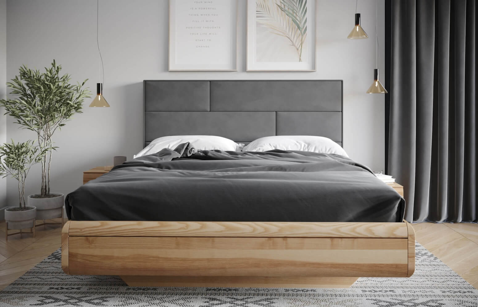 Působivé čalouněné čelo postele složené z odnímatelných čalouněných panelů je potěšením nejen na pohled, ale i na dotek. Jeho výška Vám zaručí příjemnou oporu i při sezení a dodává celé posteli noblesní vzhled.