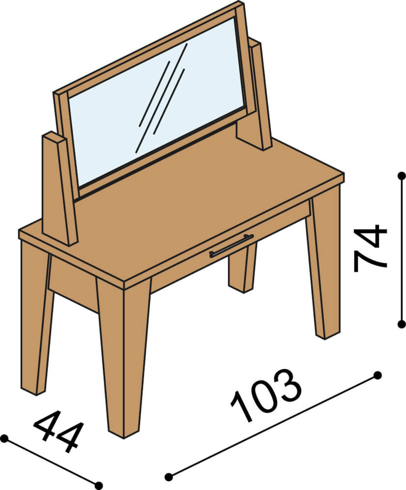 – Toaletní stolek se zrcadlem je vyráběna z masivního buku a dubu.