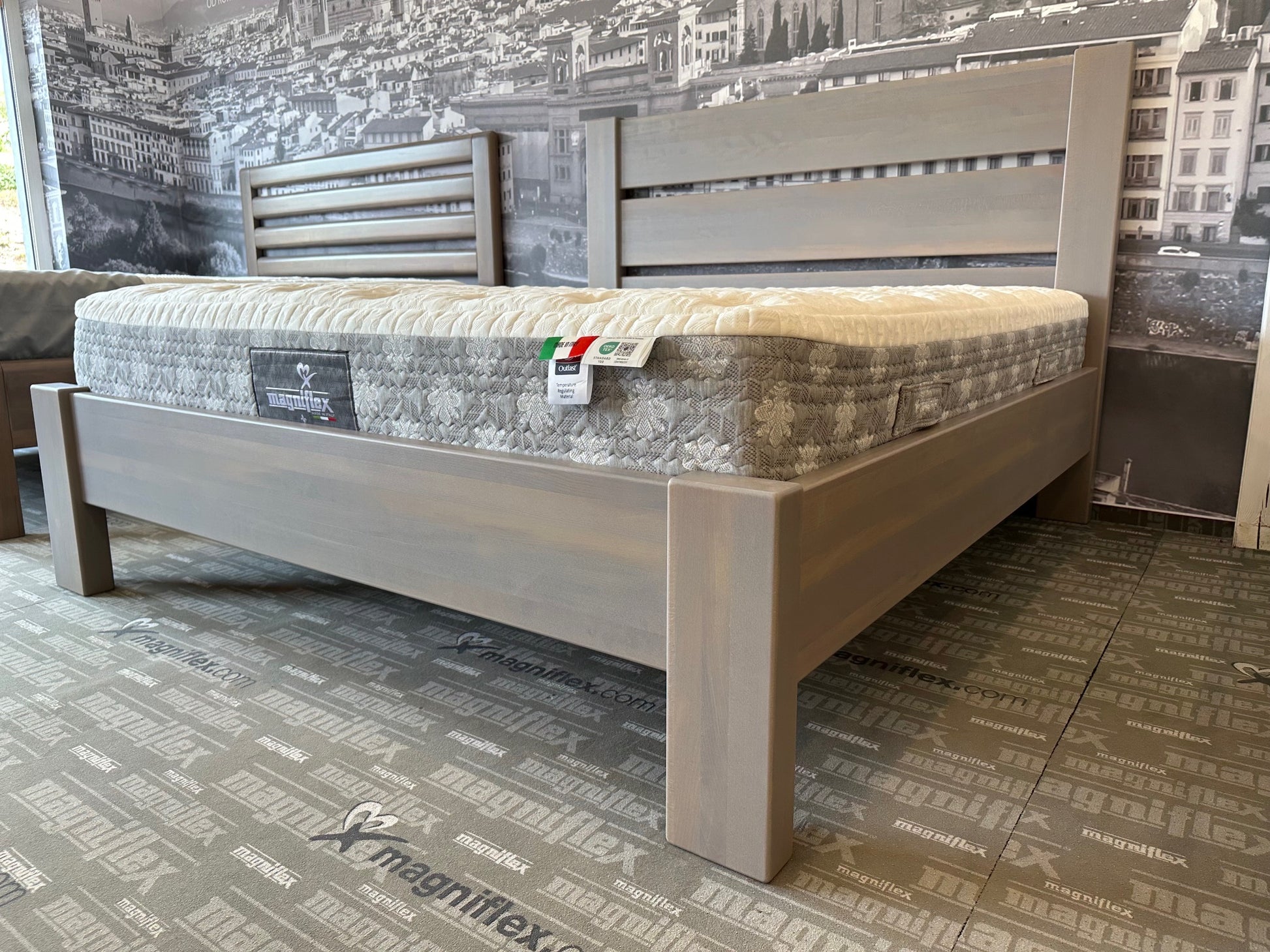 – Dominantní masivní postel z buku v průběžném provedení o tloušťce 40 mm.